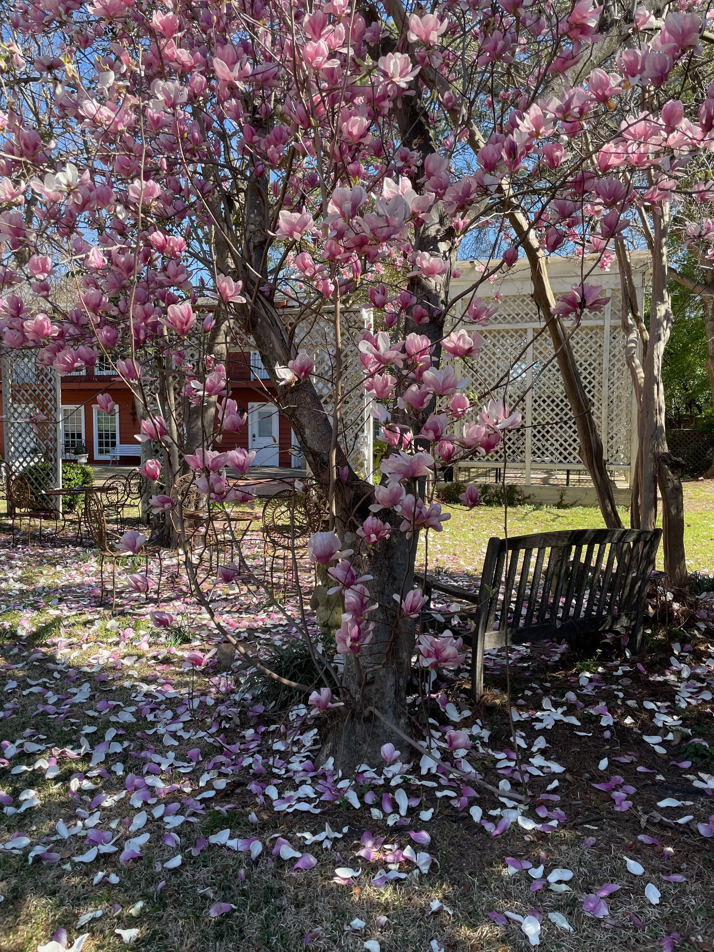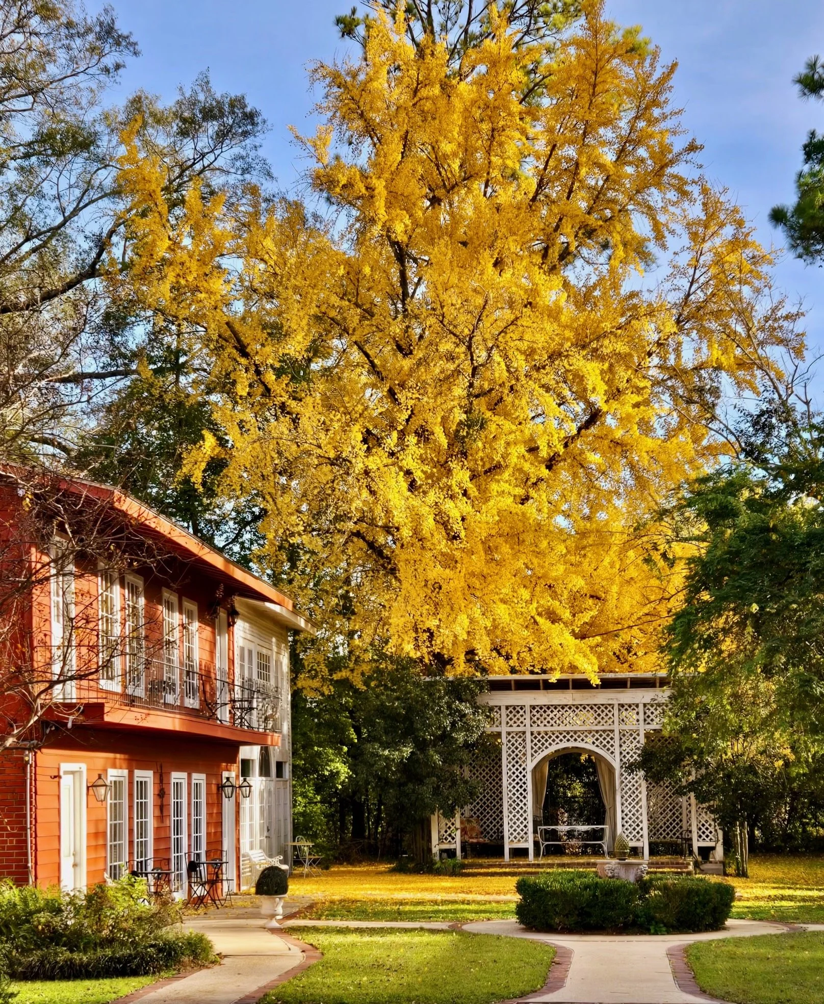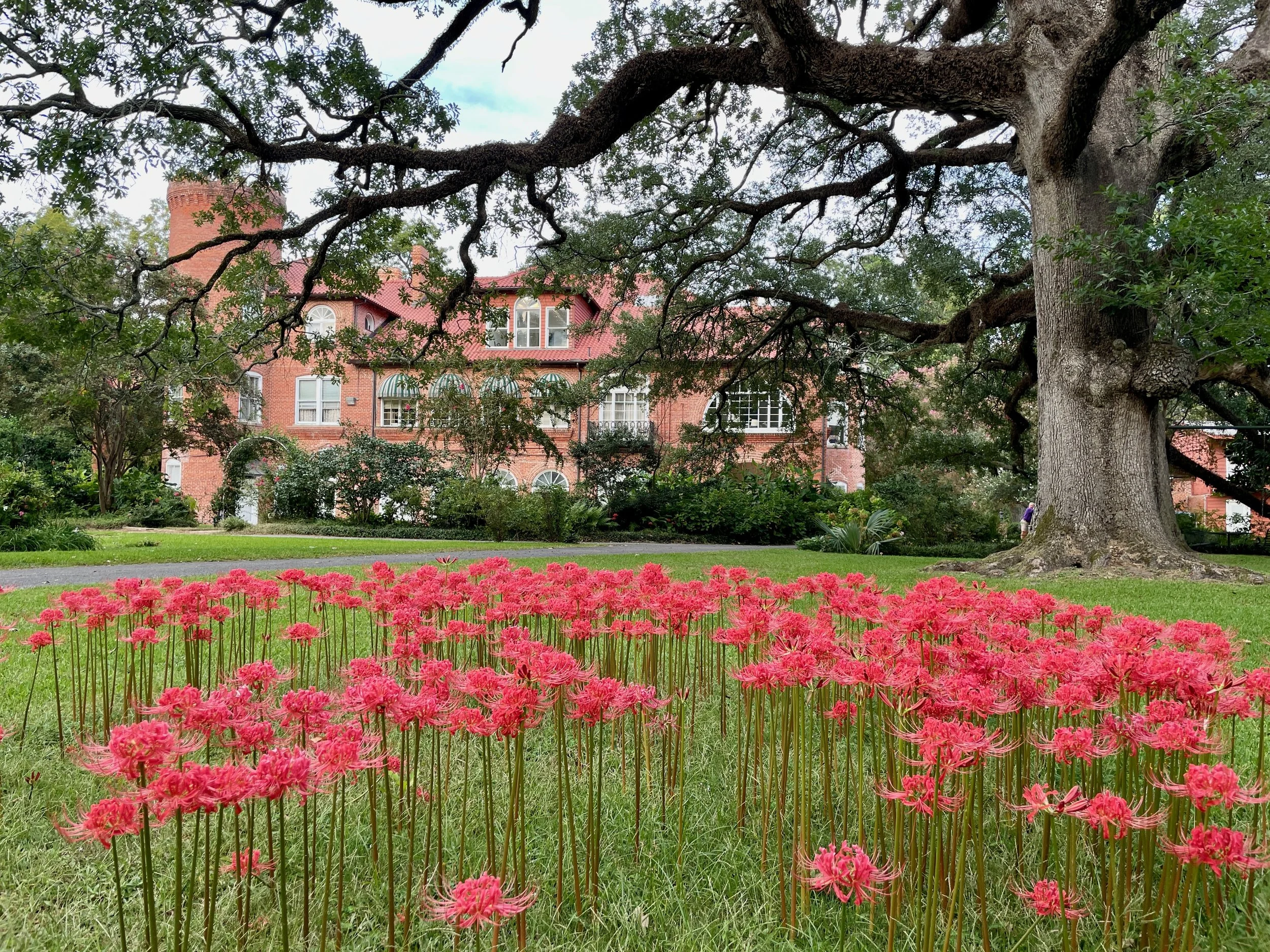 Our picturesque building sits on 5 acres full of ancient live oaks, magnolias, pecan trees and crepe myrtles, as well as over 40 camellias. There are several beautiful places to consider holding your event on the grounds.
